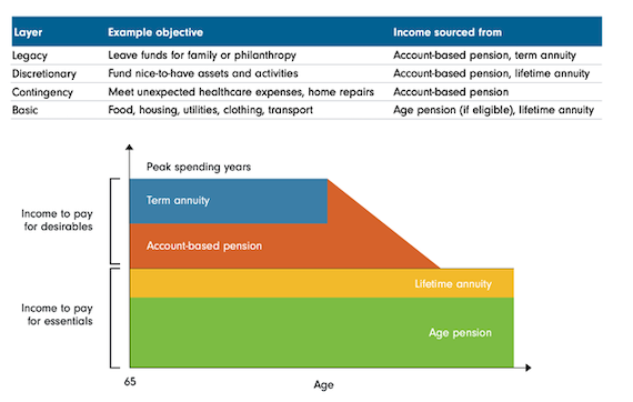 This type of strategy matches investors’ income priorities with their spending priorities and separates their needs from their wants, while prioritising income accordingly. Term annuities or bond ladders can be used to provide the shorter-term income needs.