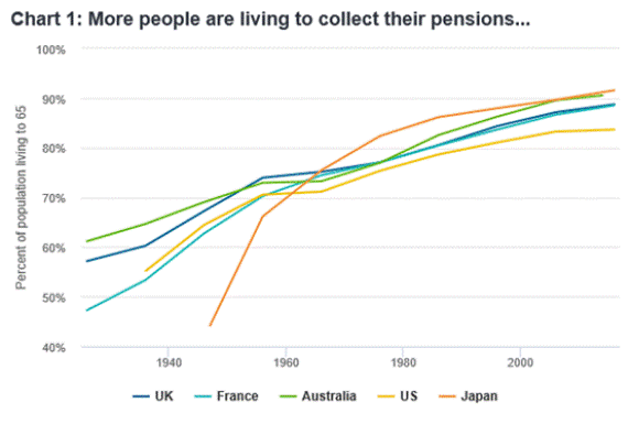 Global pension assets now stand at $45 trillion, equal to around half global GDP. But retirement is a recent concept. Germany introduced the first state-funded income in old age in 1889 for those over 70, at a time when the average life expectancy was just 45. Britain and Australia followed suit in 1908 with similar gaps between pensionable age and life expectancy. Such pensions were never designed to support decades of gardening and leisure for all. They were reserved for those living much longer than expected, to an age almost certainly past the ability to perform useful work given health conditions at the time.