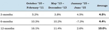 Table 1. Relative performance following periods of rising yields – Global Listed Infrastructure vs. Global Equities