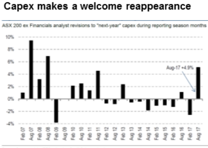 The increasing capex provisions have been clustered in energy and commodity-related sectors and in the mining sector reflected much needed replacement capex after a few lean years of investment.