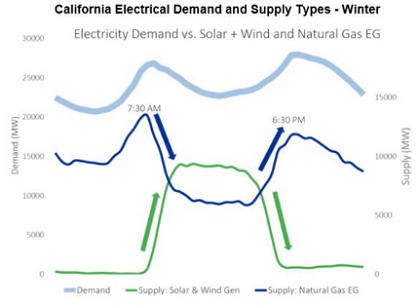 Additionally, given the intermittency of renewable energy sources and the relative clean attributes of natural gas among fast-start fuel sources, the two are viewed as important and complementary components of the energy mix going forward. As the chart below depicts, in California natural gas electric generation quickly responds to the rapid changes in renewable energy generation in order to meet demand.