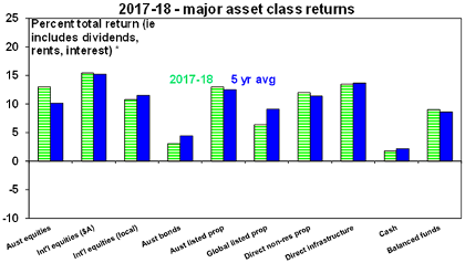 The 2017-18 financial year saw yet again pretty solid returns for well diversified investors. Cash and bank deposits continued to provide poor returns and the combination of low yields and a back-up in some bond yields saw low returns from bonds. The latter resulted in mixed returns from yield sensitive investments, but Australian real estate investment trusts performed well helped by the RBA leaving rates on hold.
