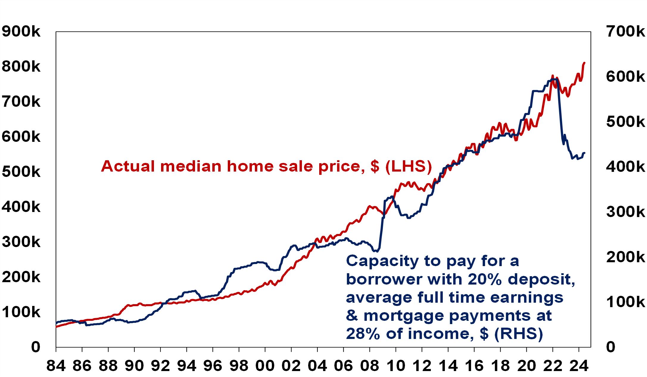 Australian home prices versus capacity to pay