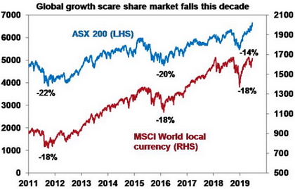 So while the risks are higher this time around, my inclination is still to see the current period as just another global growth scare like those in 2011-12 and 2015-16 which will give way to somewhat stronger growth globally and higher share markets on a six to 12 month view.