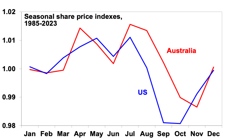 Coming out of the roughly 10% correction into October last year, share markets saw strong gains on hopes that lower inflation will allow central banks to cut interest rates and as global profits have remained strong. The going seems to have become tougher though with share markets falling in April amidst interest rate and geopolitical concerns begging the question as to whether it’s maybe now time to “sell in May and go away” given the old saying, in reference to seasonal patterns in shares.