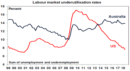 Raising rates when there is still high levels of labour market underutilisation, wages growth is weak and inflation is at the low end of the inflation target would just reinforce low inflation expectations – causing businesses and households to question whether the RBA really wants to get inflation and wage growth back up to be more consistent with the inflation target and run the risk of a slide into deflation next time there is an economic slowdown.