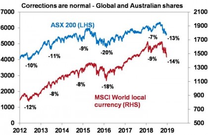 With uncertainty around trade, global growth and President Trump remaining high shares could still have more downside into early next year, particularly after having broken below their October/November lows. In other words the further break down in share markets seen in December may be signalling a shift from a simple correction to a gummy bear market. However, our view remains that a grizzly bear market is unlikely because a US, global or Australian recession is not imminent. Put simply: