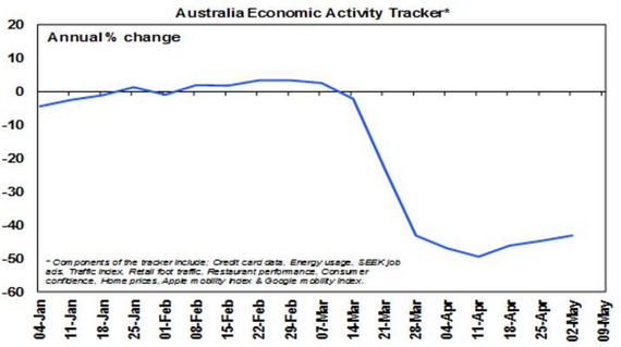 Of course, we are still not out of the woods on coronavirus and there are some bad stats ahead on the economy. This is indicated by our Australian Economic Activity Tracker which is based on high frequency alternative data and is running down 40% on year ago levels, reflecting a preponderance of components most affected by the shutdown.