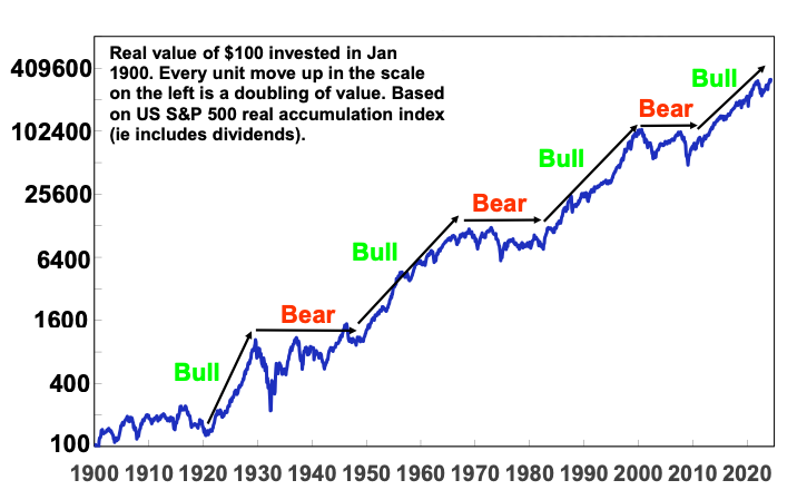 Long term and bear phases in US shares