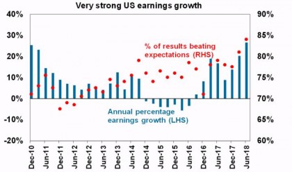 As a result, we remain of the view that (absent a full-blown global trade war) the drip feed of Fed rates hikes will continue well into next year, that the 35 year bull market in bonds that began in the early 1980s is over and that the risks to US and by implication global bond yields into next year are still on the upside. This suggests investors need to be a little more wary of yield-sensitive globally-exposed investments that don’t offer inflation protection (like inflation-linked bonds do and the potential for rising rents do in the case of commercial property and infrastructure) than was the case a few years ago when there was still plenty of spare capacity in the US. Ongoing Fed rate hikes also point to ongoing upwards pressure on the US dollar which in turn suggests that investors should remain cautious in relation to emerging market shares.