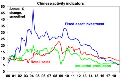 China slowed through 2018. GDP growth for the whole of 2018 came in at 6.6% which was a bit above our expectation of 6.5%, but it was down from 6.8% growth in 2017 and momentum slowed to 6.4% year on year in the December quarter. Some commentators argue that China’s actual GDP growth is much weaker – maybe just half the reported rate. The argument often runs along the lines that the GDP data comes out too early after the end of each quarter, it’s too smooth to be believed and that it’s made up to suit the annual growth target. This speculation has long been around and I’ve always thought it’s a bit of a distraction: it stands to reason that emerging countries like China have less to spend on stats so they may be less accurate than in rich countries, and if China’s economy is really a lot smaller than it claims then why is the rest of the world so concerned about a slowdown in its economy? And why is the US concerned about its rising economic clout? The bottom line is that it’s all too academic to get too hung up on and so I tend to see the GDP data as a rough, but admittedly imperfect, guide.
